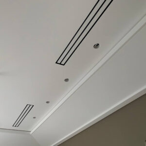 Laconic and minimalistic design in the track lights style. Metal lattice is 1 mm without a central mold. Slotted air grille with 20 mm gap to the walls and ceilings. High-quality powder coating. Painting after installation is not required.
